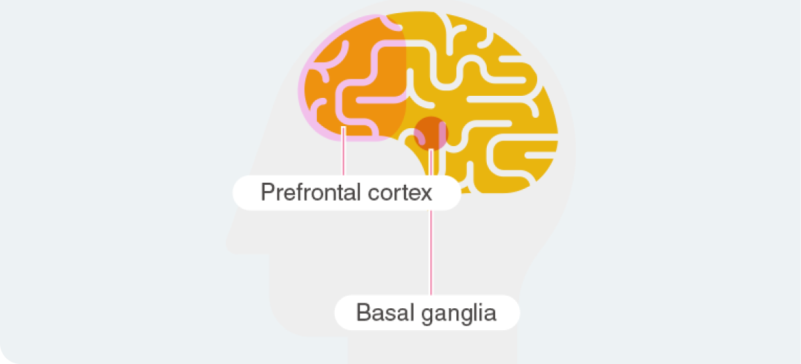Neurotransmitters are chemicals that are used to pass messages between brain cells. Two neurotransmitters called noradrenaline and dopamine normally connect the prefrontal cortex (responsible for planning and starting and carrying out tasks) and the basal ganglia (responsible for impulse control and coordinating information).