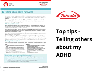 Whoever you tell, remember that most people don’t know about ADHD, so you’ll have to explain about how your brain is slightly different, and why you might behave differently from others.